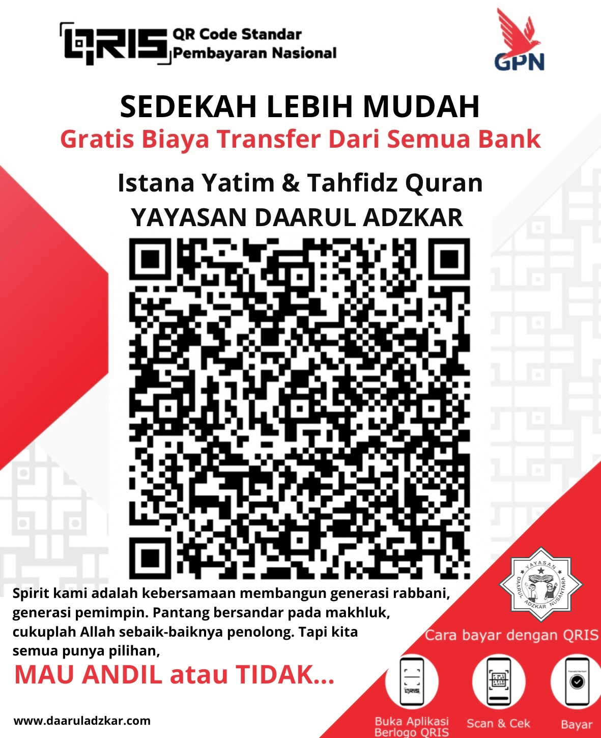Berdiri dan LEGAL pada tanggal 20 Maret 2013, merupakan sebuah Yayasan Nirlaba dengan nama "YAYASAN DAARUL ADZKAR NUSANTARA" yang berfokus pada beberapa program pendidikan dan sosial, diantaranya :